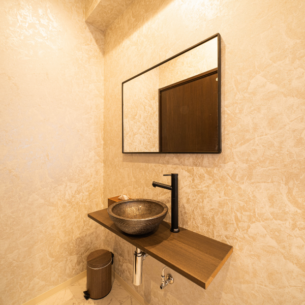 東大阪市鴻池 ゴルフシミュレーション店舗の改装をお任せいただきました。 オーナー様がバリが好きとのことでアジアンテイスト家具や雑貨などが引き立つ 白を基調にしたデザインにさせていただきました。 取手や洗面ボールなど細部にもこだわりました。