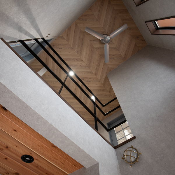 西海岸風のデザインでよく使われる、ヘリンボーンの床。