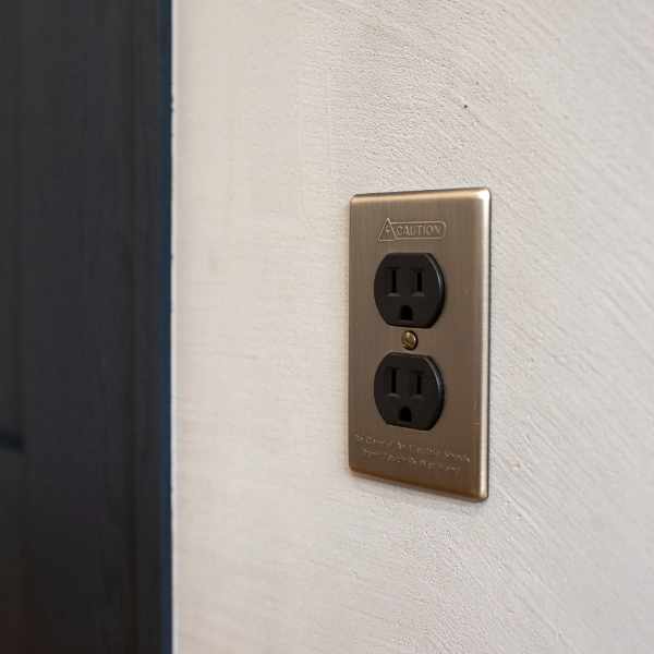 コンセントもこだわってステンレスの枠のものを選びました。細部まで、お客様のお好みに合わせて、お伺いいたします。