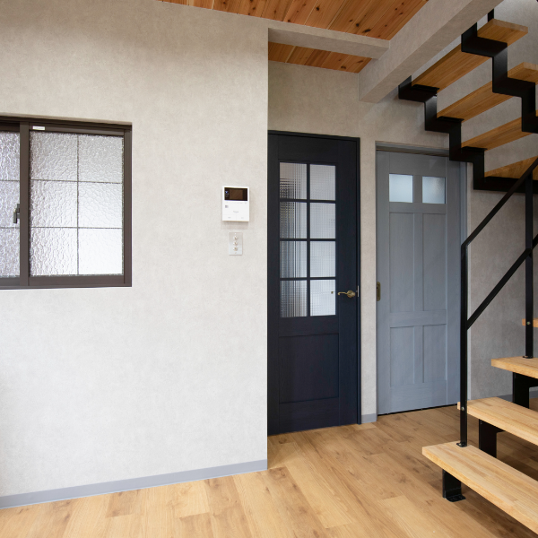 階段の構造は鉄骨と木製の踏み板、デザイン性が高く、見せる階段としておしゃれな空間になります。